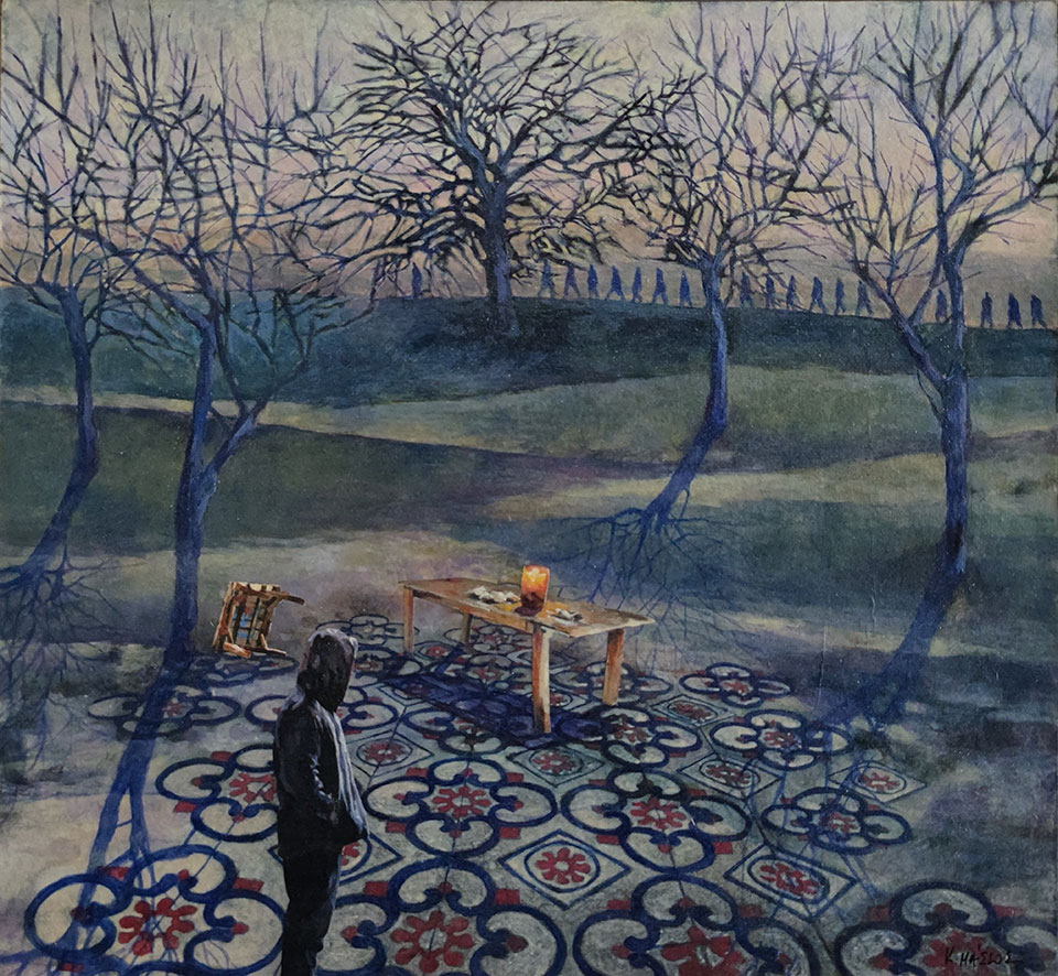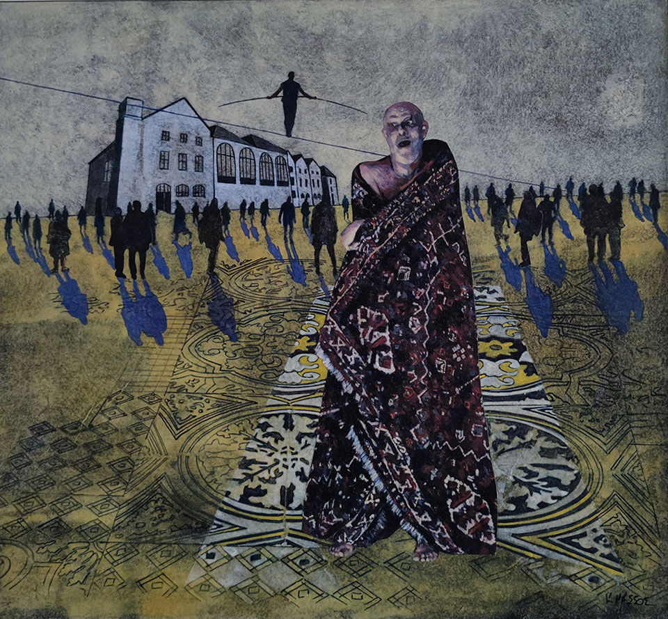 Ο Κωνσταντίνος Μάσσος χρησιμοποιεί την αλληγορία στην ποιητική ελεγεία της εικονοποιίας του. Οι μορφές του, αληθοφανείς κι ονειρικές, κινούνται σε έναν χωροχρόνο που εμφιλοχωρεί το παρελθόν στο παρόν, τις μνήμες επίσης και τα βιώματα, σε ένα προσδοκώμενο μέλλον. Ένα μέλλον, που αντικατοπτρίζει εφιάλτες μαζί με λυτρωτικές αναλαμπές, καθώς αυτές θάλλουν κάτω από ανέσπερους ουρανούς. Ουρανούς, πυριφλεγέθοντες και νεφελοσκεπείς, κοντινούς και μακρινούς, οικείους αλλά κι απόξενους, που σχηματίζονται από συλλαβές οραμάτων και φτερουγίσματα πουλιών, από ψιθύρους ζωής κι αποσιωπητικά, από φόβους και λαχτάρες, από οριακές ισορροπίες κι ανατροπές μιας ύπαρξης που αφορά το «εγώ» και το «εμείς», καθώς αγωνιά κι αντιστέκεται, αλλοτριώνεται κι ωστόσο επανεμφανίζεται, μέσα από κάποιο «έτερον ένδυμα» θαρρείς. Ένδυμα της ύπαρξης, που διερωτάται κι αμφιβάλλει, που κρύβει και προμηνύει, που προσδοκά αλλά και που ανατρέπει τις συμβάσεις, την ώρα που αναφλέγεται στον έρωτα της ζωής και την ίδια στιγμή περιθάλπεται από τις χαρμολύπες της, καθώς και τις ατέρμονες, αλλά πάντα ελπιδοφόρες αναμονές της, ζωοδοτώντας την δημιουργική μας «πράξη» και γραφή. Αυτή που μας απεικονίζει ως «είδωλα καμόντων» των διαφόρων μετασχηματισμών μας, όπως αυτοί δηλώνονται μέσα από τους αντικατοπτρισμούς μας στην ζωή.