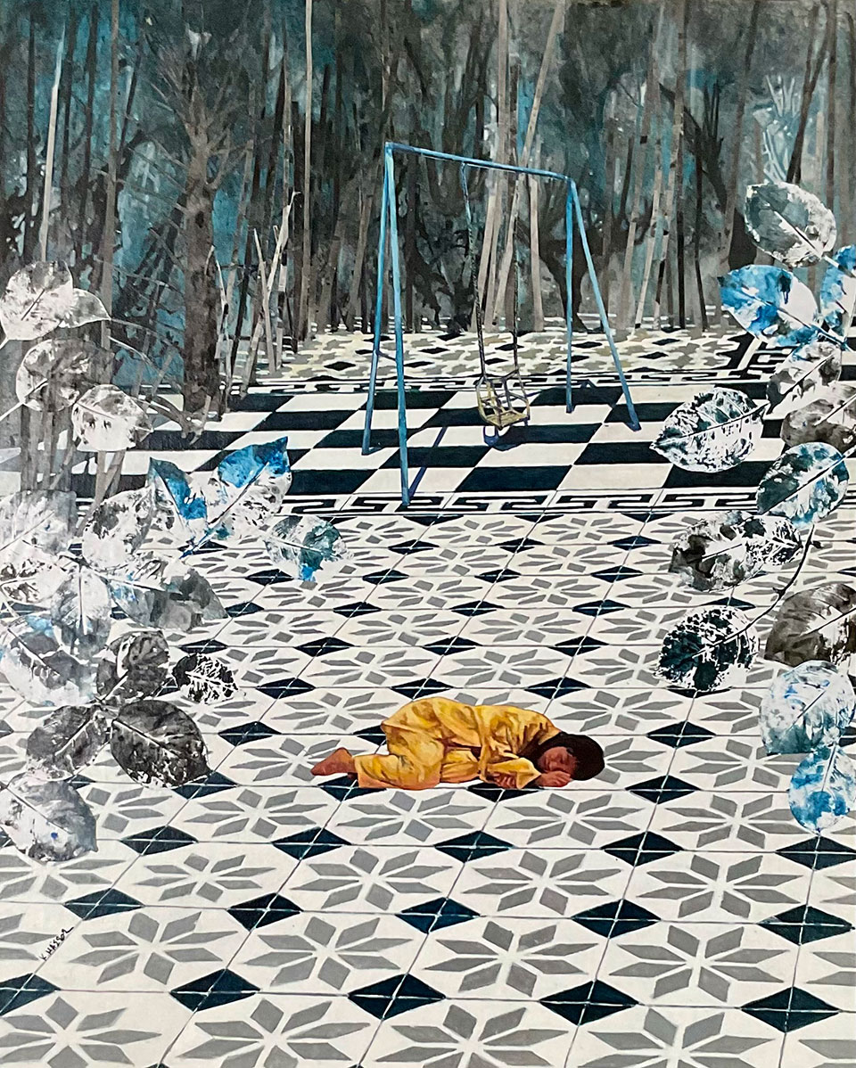 Δύο ακέφαλες κούκλες βιτρίνας ως άλλοι πρωτόπλαστοι, κουκουλοφόροι με βαλίτσες και κούτες μετακόμισης συνθέτουν την αφήγηση του κατά Μάσσο προπατορικού αμαρτήματος. Η κληρονομική τάση της ανθρωπότητας προς την έκλυτη ζωή αποδεικνύει πως ο άνθρωπος είναι ένα είδος εγωκεντρικό με καταστροφικές και αυτοκαταστροφικές τάσεις στον βωμό μίας στείρας αντίληψης περί ανωτερότητας.